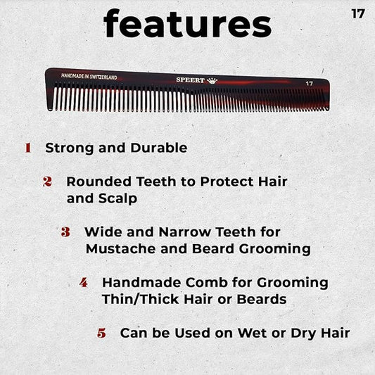 #17 Handmade Wide Narrow Tooth Mustache Beard Comb Small Tortoise Havana Acetate Thick Coarse Curly Fine Short Pocket Sized Facial Hair Grooming Tangle Free Beard Straightener Growth Care Comb