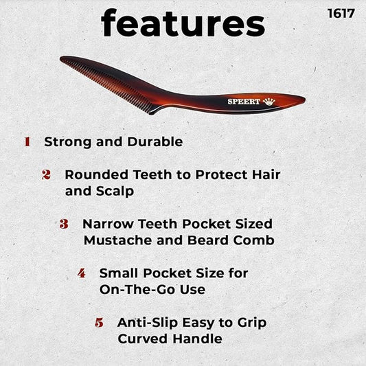 #1617 Handmade Narrow Tooth Mustache Beard Comb Small Tortoise Havana Acetate Thick Coarse Fine Short Pocket Sized Facial Hair Grooming Tangle Free Beard Straightener Growth Care Styling Wet