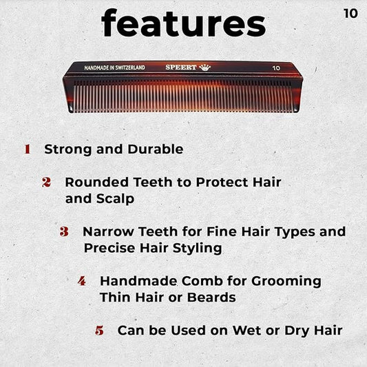 #10 Handmade Narrow Tooth Comb Tortoise Havana Acetate Fine Straight Thin Detangling Parting Grooming Teasing Hair Styling Hairdresser Barber Hairdressing Wet Dry Pocket Travel Women Men Kids