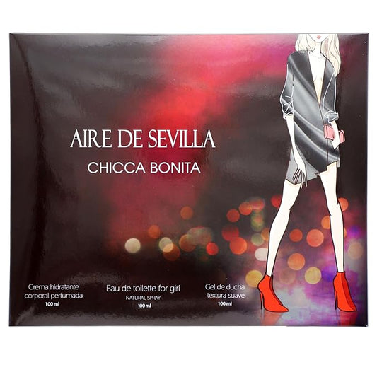 Instituto Español Aire de Sevilla Chicca Bonita Gift Set for Women – Travel Size Eau de Toilette, Body Gel & Body Lotion (100 ml / 3.4 fl oz Each)