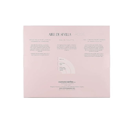 Instituto Español Aire de Sevilla Rose Gift Set for Women – Travel Size Eau de Toilette, Body Gel & Body Lotion (100 ml / 3.4 fl oz Each)