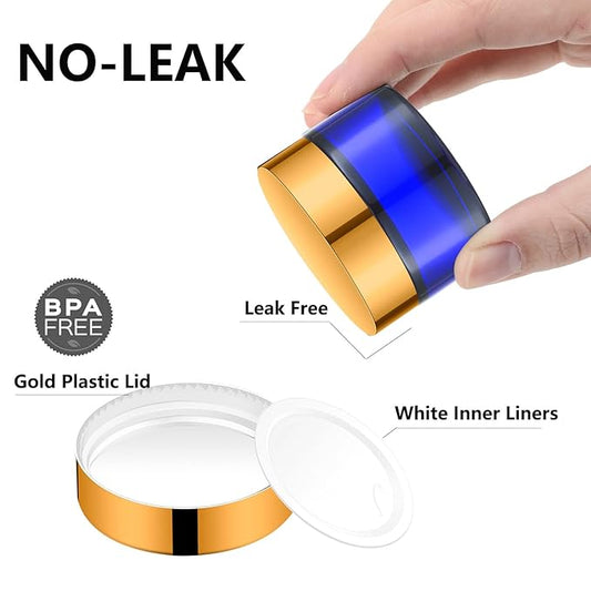 1 Oz Blue Round Glass Jars with Inner Liners and Gold Lids(24PCS) Empty Cream Containers Refillable Cosmetic Vials for Cosmetics, Lotions, Ointment, Body Scrubs & Balms