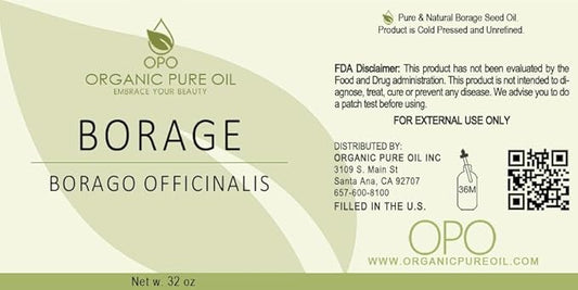 OPO Borage Seed Oil - 32 oz - Pure Unrefined Non GMO, High GLA, Bulk Natural Carrier Oil Moisturizer for Skin Hair Nails Body Soaps DIY & More - Liquid Borago Virgin Vegan