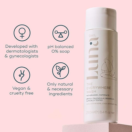 Luna Daily Intimate Feminine Wash, Coconut & Lactic Acid Formula | pH-Balanced Body Wash for Women |Nourishing Cleanser for Pregnancy, Postpartum & Sensitive Skin | Gentle & Maternity-Safe, 250ml