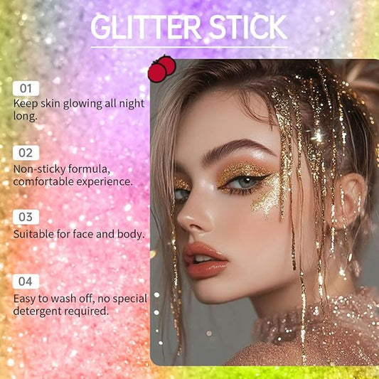 Gold Body Glitter Stick, Holographic Sparkling Neon Outfit Singer Concert Music Rave Festival Accessories Face and Body Glitter Gel Makeup.