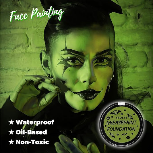 Ogre Green Foundation Oil Based Face Paint, Professional Green Greasepaint for St. Patrick's Day, Halloween Face Painting for Witch Shrek Hulk Goblin Monster for Adult Carnival & Costume Party