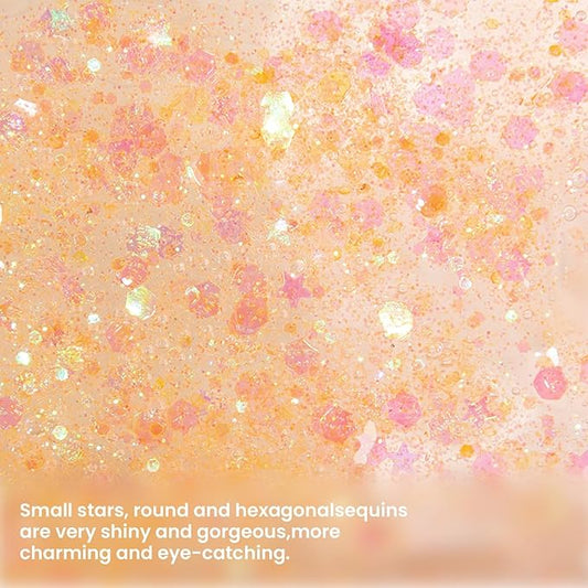 DAGEDA Body Glitter Gel, Face Glitters Body Gel Sequins Shimmer Liquid Eyeshadow, Chunky Glitter for Face Hair Nails, Holographic Cosmetic Laser Powder Festival Glitter Makeup 1.7oz (Coral)