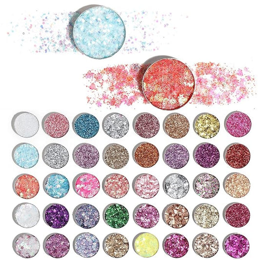 evpct CAKAILA Glitter Colorful Sparkly Eyeshadow Palette For Eye Makeup White Silver Glue Gel Face Paint , 40 Colors