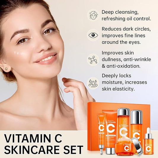 Vitamin C Skin Care Set for Women - 6PCS Skincare Gift Set With Facial Cleanser, Toner, Eye Cream, Serum, Lotion & Face Cream - Moisturizing Face Skin Care Kit for Anti-Wrinkle for All Skins