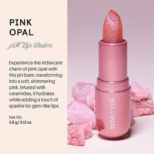 Winky Lux Pink Opal Glimmer Balm – Nourishing pH Lip Balm with Color Changing Pink Tint with Shimmer, Hydrating Ceramides Soften Lips, Raspberry Vanilla Scent