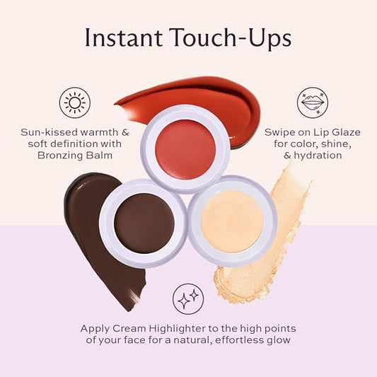 Subtl 3-in-1 Makeup Stack – Cream Bronzer, Powder Highlighter & Lip Glaze for On-the-Go Touch Ups – Lightweight, Travel-Friendly, Blendable Balm (Light/Caramel)