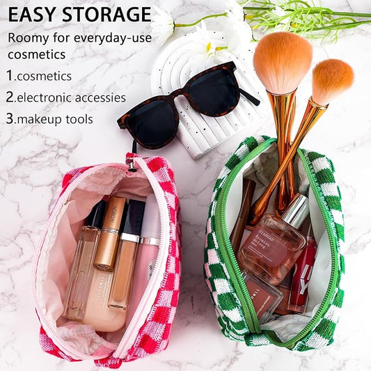 ZLFSRQ 2Pcs Checkered Pencil Case Cute Pencil Pouch for Teens Checkered Makeup Bag Medium Travel Cosmetic Bag Preppy Makeup Pouch for Purse Aesthetic Zipper Toiletry Bags Organizer(Pink/Green)