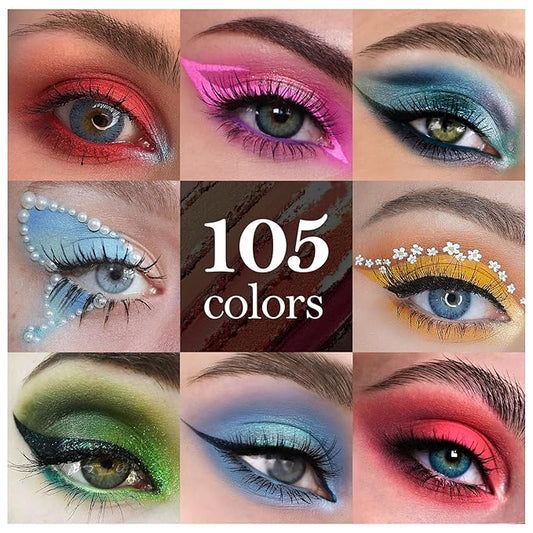 105 Colors Eyeshadow Palette with 5Pcs Brushes Set,Professional Makeup Smokey Nude Matte Eyeshadow Palette,Colorful and Long Lasting Powder Eye Shadow Makeup Gift Set