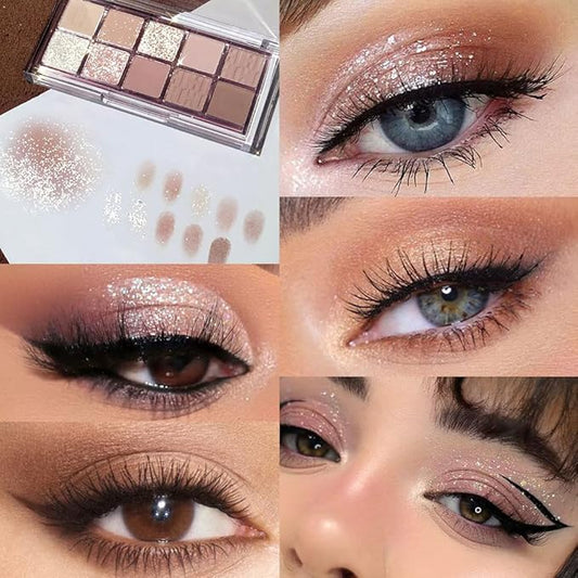 10Colors Light Brown Nude Silver Eyeshadow Palette Makeup,Natural Neutral Eye Shadow,Naturing-Looking Long Lasting Waterproof Blendable Hypoallergenic Suitable for Beginners