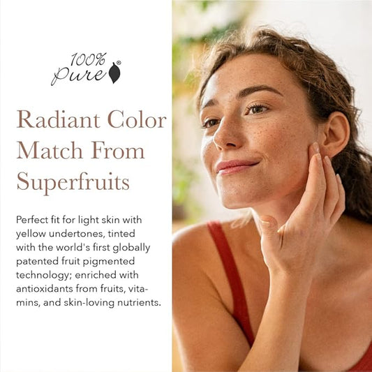 100% PURE Tinted Moisturizer Anti-Aging Face Makeup - Fruit Pigmented Golden Peach Light to Medium Coverage & Dewy Glow - Lightweight Foundation Medium-Tan Skin w/Yellow Undertone - Vegan - 1 Fl Oz