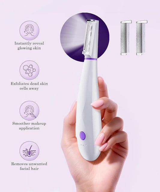 Dermaplane Razor for Women Face, Sonic Smoothly Dermaplane for Women Face & Eyebrow Razor with LED Light, 3 Speeds, Rechargeable Dermaplaning Tool for Face, 8 Blades & 2 Microsmooth Exfoliation Tips