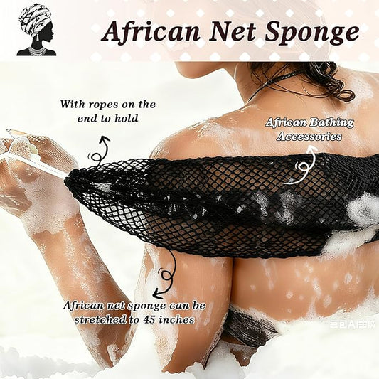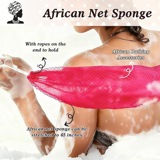 Zkptops 2 Pieces Authentic African Net Sponge Small African Scrubbing Net Exfoliating Washcloth Back Scrubber Long Body Scrubber Bath Sponge for Shower Bathing Accessories for Women (Pink Blue)