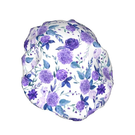 Violet Purple Rose Shower Cap For Women Adjustable Double Waterproof Layers Bathing Shower Hat Hair Protection Reusable Ladies Spa Salon Shower Hat