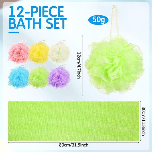 12 Pack Body Wash Cloths for Showering Set 6 Loofah Sponge 6 African Net Sponge Exfoliating Back Scrubber for Men & Women Shower(Yellow, Purple, Sky Blue, Beige, Pink, Neon Green)
