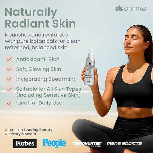 Ahimsa Natural Body Wash for Women, Hydrating & Moisturizing Body Wash Sensitive Skin, Antioxidant-Rich Bath & Shower Gels with Spearmint & Ginger, Gentle, Plant-Based, Organic Formula, 10oz