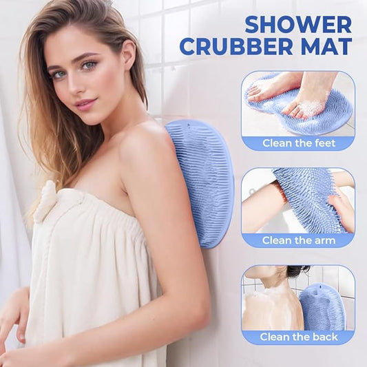 Shower Foot Scrubber Mat with Non-Slip Suction Cups, Foot Back Cleaning Pad Back Washer Exfoliating Bath Wash Pad, Non Slip Bathtub and Shower Mat with Suction Cups and Drain Holes
