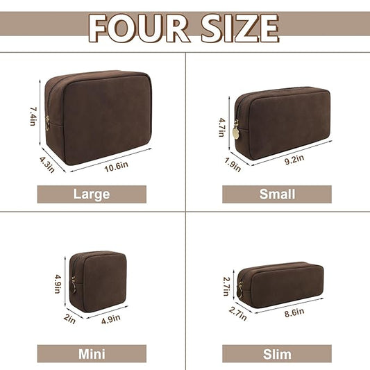 Waterproof Small Makeup Bag for Purse,Cute Pouch Preppy Suede Makeup Brush Holder with Zipper,Girls Teens Portable Storage Case Small Travel Toiletry Bag for Office(Slim-Coffee)