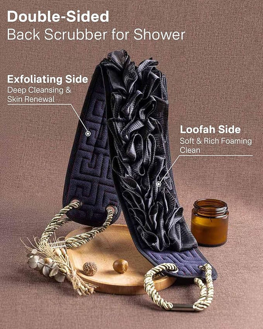 Yiclick Exfoliating Washcloth Towel with Handle, Shower Puff Back Scrubber for Shower, Exfoliating Body Scrubber Exfoliator, Bath Sponge Loofah Luffa Washer Exfoliator