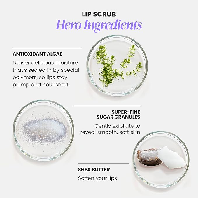 - Moisturizes Like A Dream - The lip scrub's nourishing formula includes Shea Butter and algae, which provide excellent moisturizing properties, making it an excellent lip scrub for dry cracked lips. This lip scrubs exfoliator & moisturizer is designed to provide your lips with the right balance of nutrients, ensuring that your lips are always soft and hydrated.