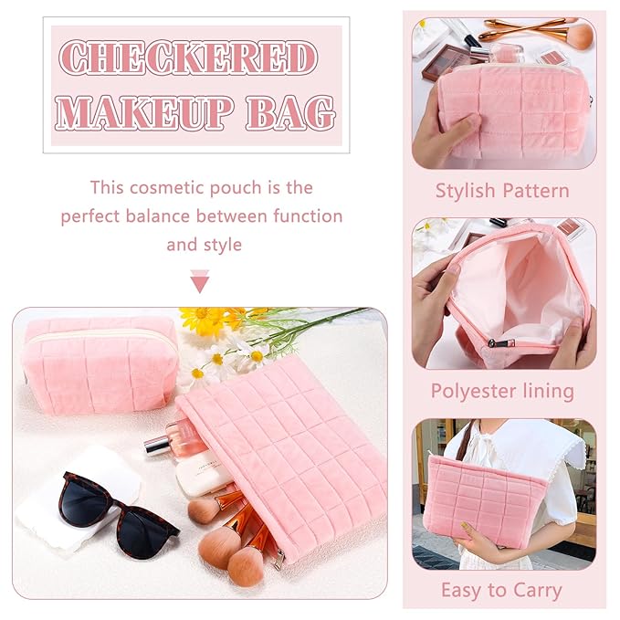 - CHECKERED TRAVEL POUCH: The checkered cosmetic bag can be used as a toiletry bag or pen bags. Daily makeup, skin care samples, mobile phone can be put in the bag, and can also be used as a purse. The checkered makeup pouch can be used while traveling, since makeup bags are lightweight and don't take up a lot of space in your suitcase. Makeup pouches for organization