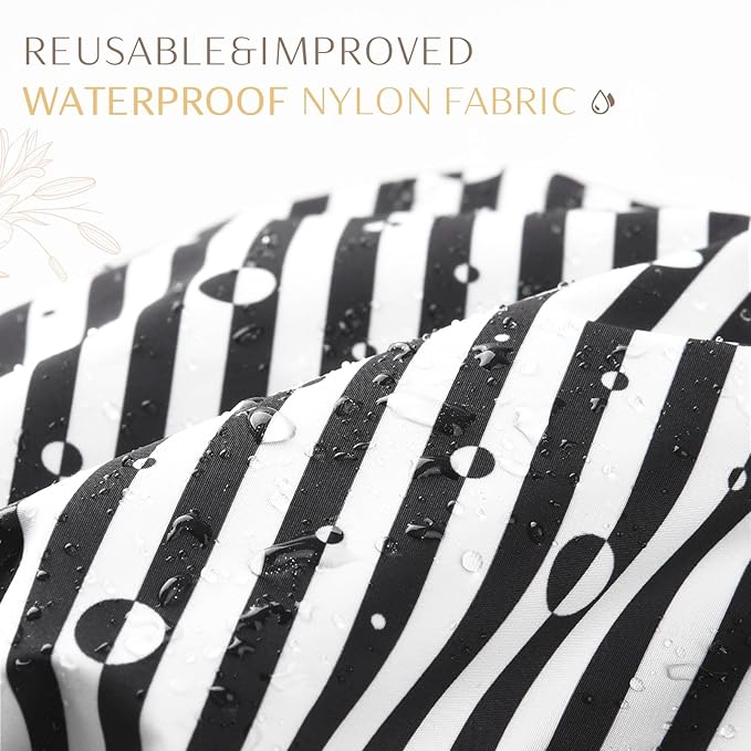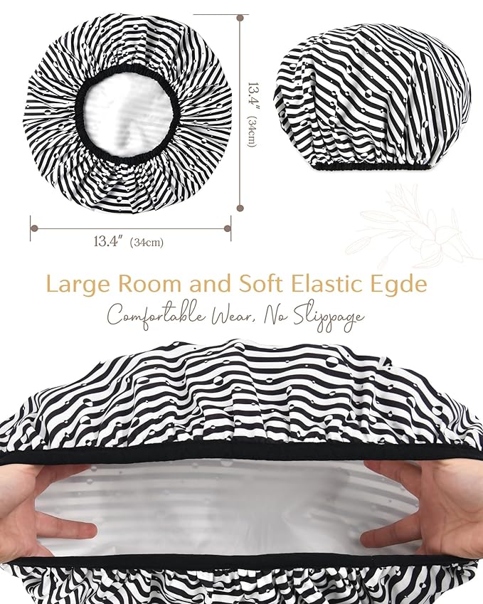 - Quality and functionlity in one: Our shower caps for women are reusable, waterproof and comfortable. They are made with high quality polyester and silicon, to keep hair dry