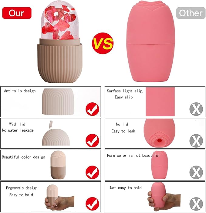 - โ๏ธ HIGH-QUALITY: This ice roller for face is made of high-quality silicone material, which is repeatable and durable. Small and light design, ergonomic hand design is easy to grasp, ice roller head can slide on the skin,It is also easy to carry.