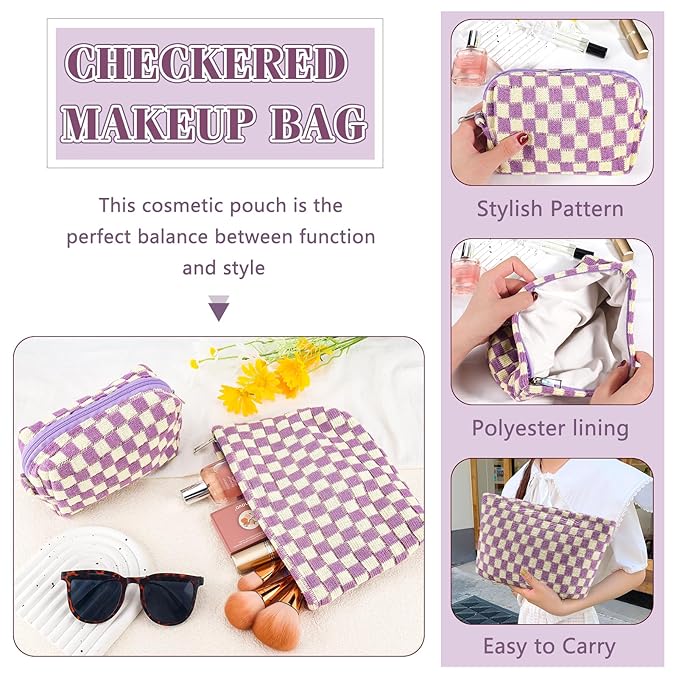 - CHECKERED TRAVEL POUCH: The checkered cosmetic bag can be used as a toiletry bag for women or pen bags. Daily makeup, skin care samples, mobile phone can be put in the bag, and can also be used as a purse. The checkered makeup pouch can be used while traveling, since zipper pouches are lightweight and don't take up a lot of space in your suitcase. Makeup pouches for organization