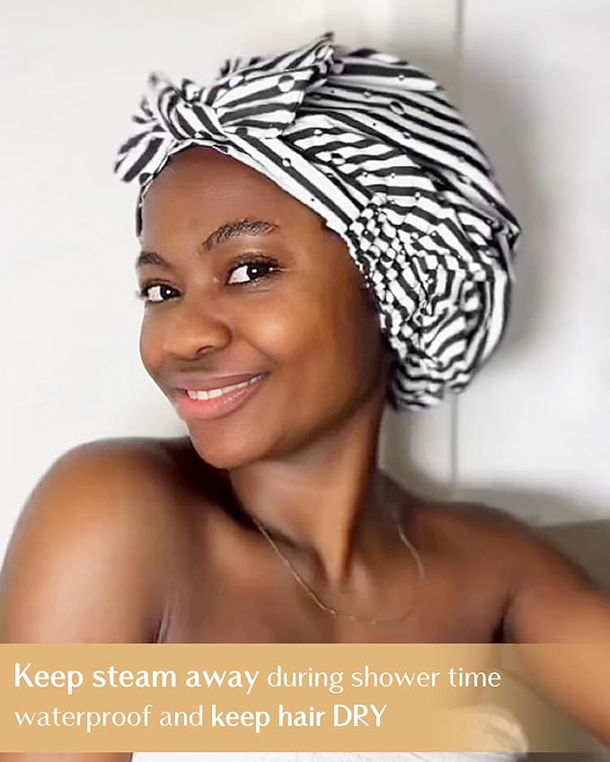 - High quality: Reusable, waterproof and comfortable cute shower cap for women, made of advanced waterproof nylon fabric, is durable and stylish