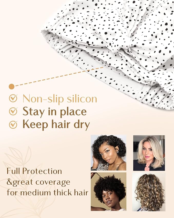 - High quality: Reusable, waterproof and comfortable cute shower cap for women, made of advanced waterproof nylon fabric, is durable and stylish