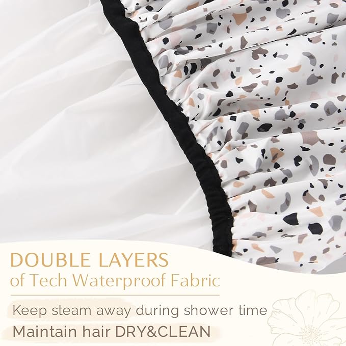 - Waterproof shower cap: It can help protect your hair. The YANIBEST Fashionista Collection of stylish shower caps feature stretchable elastic trim to fit most head sizes and a soft, waterproof design made from frosted PEVA, an non-chlorinated alternative to vinyl. These sassy shower caps will stay clean and fresh shower after shower