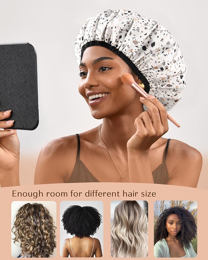 - Perfect for most hair types: Long hair, curly hair, voluminous hair, short hair or locked hair, it won't matter! These large shower cap for women will accommodate all types of hair and will fit on most head sizes
