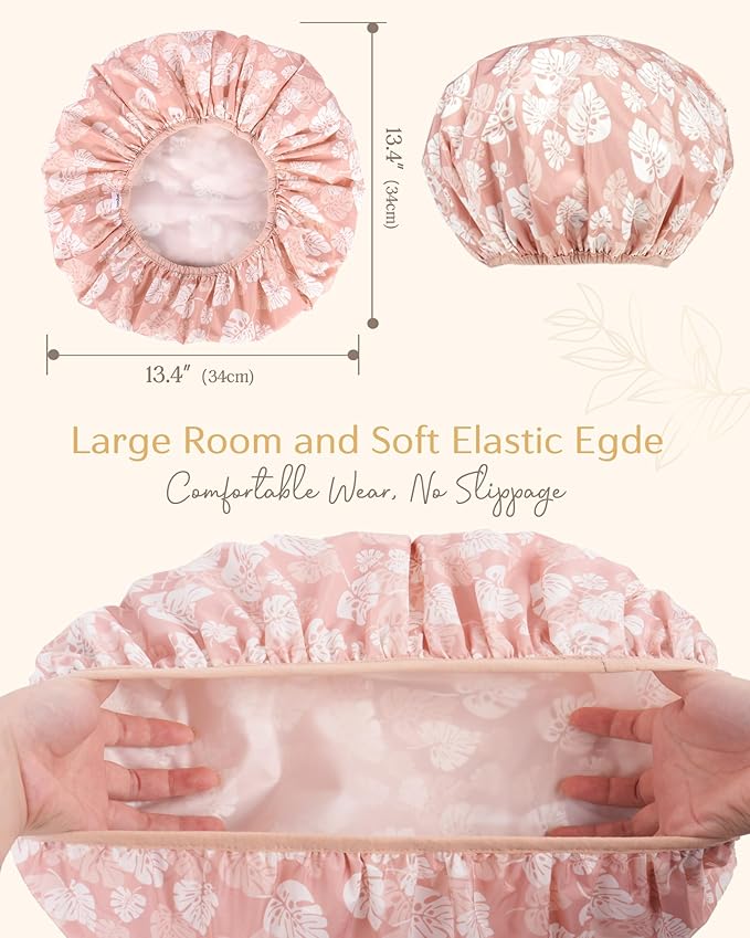 Yanibest Shower Cap Reusable Waterproof - Double Layer Shower Caps for Women, Washable Shower Bonnet with Soft Non-Slip Elastic Band, Bath Hair Hat for Most Hair Types
