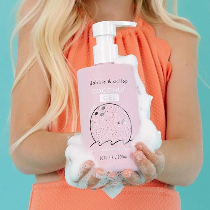 - Versatile 3-in-1 Coconut Cleanser: Transform your childβs bath routine into a lush tropical oasis with Dabble & Dollop's All Natural Coconut 3-in-1 Shampoo, Body Wash, and Bubble Bath. Our premium, plant-based formula is designed to gently cleanse while maintaining their skin and hair's natural moisture balance, leaving them feeling soft, smooth, and infused with a delightful, exotic coconut scent. Ideal for all skin and hair types, this hydrating hair and body wash is both cruelty-free and vegan, making it a responsible choice for the environment and your family.