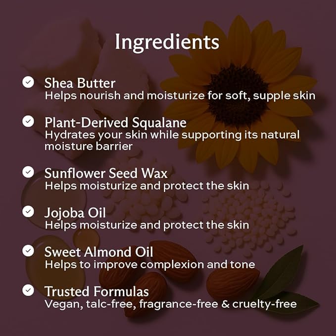 - CLEAN, HIGH-QUALITY INGREDIENTS: all formulas are created with dry, sensitive skin in mind. Perfect for all ages, teens to mature skin, while being vegan, cruelty-free, fragrance-free, gluten-free, talc-free, and paraben-free.
