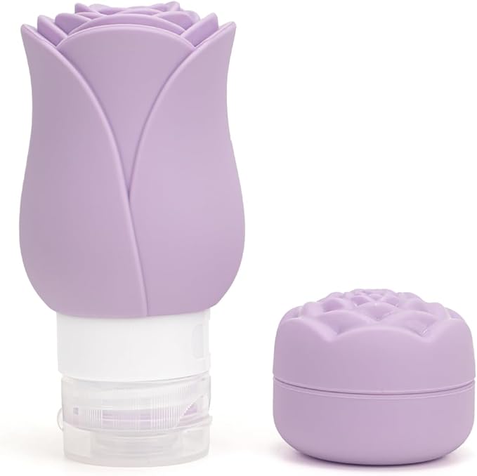 - PREMIUM SAFE SILICONE MATERIAL: Our travel size bottle and cosmetic facial cream jar is made of BPA Free silicone, durable for long lasting used. Soft touching and light weight, the whole purple new color series include clear bottle.