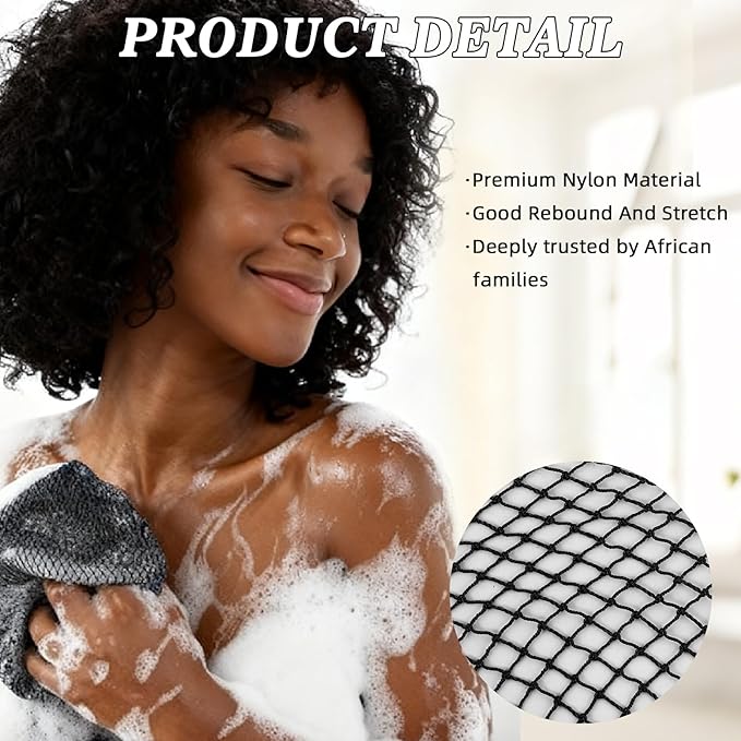 - Premium Nylon Material: Made from premium nylon, the African body scrubber ensures a gentle yet effective clean. The authentic African bath sponge feels soft against the skin while still providing enough friction for exfoliation. As an African net washcloth, African bath sponge is designed to be gentle on the skin, suitable for daily use without causing irritation